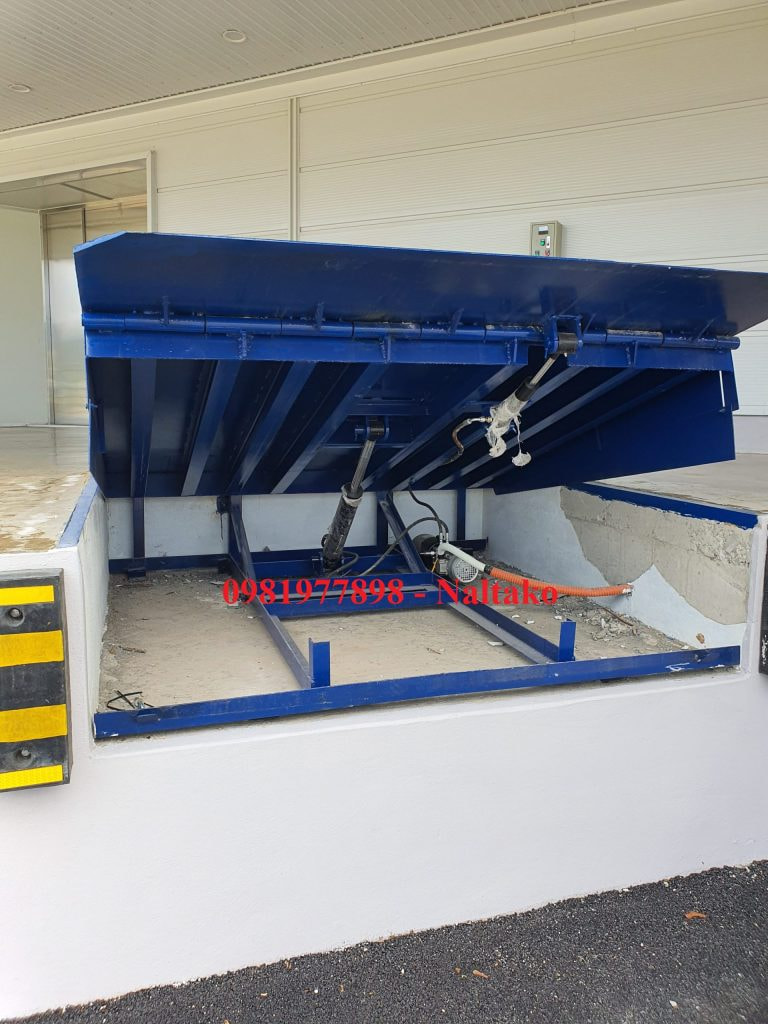 A 6-ton dock leveler, also known as a 6-ton capacity dock leveler or 6-ton hydraulic dock leveler. This is equipment that supports loading/unloading goods at warehouses, factories, and production workshops. This device has a maximum lifting capacity of 6 tons, helping forklifts move easily from the warehouse floor onto the container truck and vice versa.
