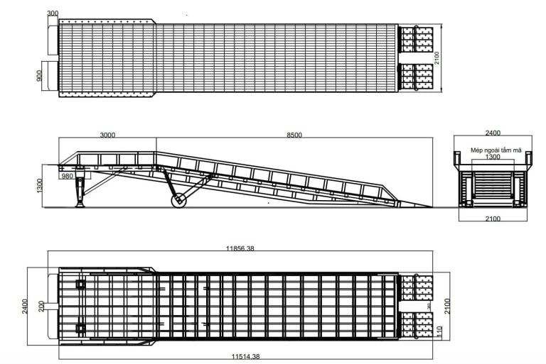 The standard 8-ton forklift ramp, also known as a container ramp or yard ramp, is essential industrial equipment in container loading systems and logistics warehouses. Designed to support the transportation of goods from containers to the warehouse, the forklift ramp creates a safe sloping surface, helping forklifts move easily, quickly, and efficiently. With the ability to optimize the loading process, this device is suitable for businesses using 40-foot containers in production and logistics.