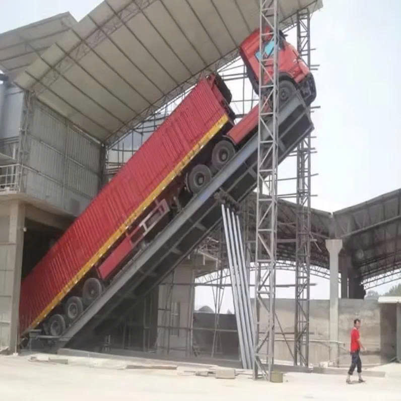 The dumper helps discharge wood chips from trucks onto conveyor systems or into storage warehouses, providing raw materials for plywood or paper production processes.