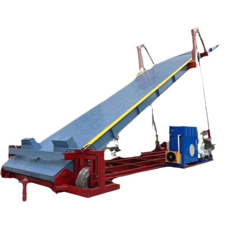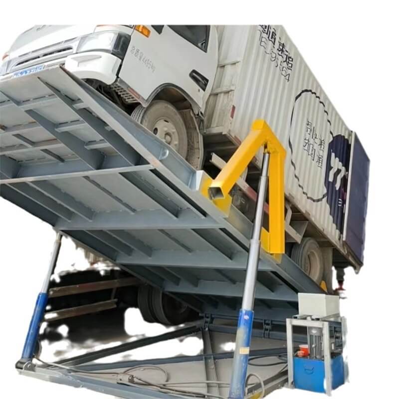🔹 Bước 2: Hệ thống thủy lực kích hoạt, nâng bàn lên độ cao và góc nghiêng tối ưu, đảm bảo bưu kiện có thể trượt xuống một cách trơn tru mà không gây xáo trộn hoặc hư hại.
