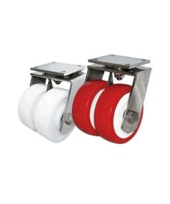- Bánh nhựa Nylon (Trắng): Có độ cứng cao, chịu tải cực tốt, thường dùng trong môi trường nước hoặc kho lạnh nhờ khả năng chống ăn mòn.