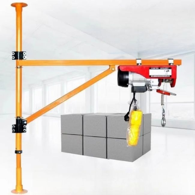 - An toàn và tiện lợi: Thiết bị được trang bị khóa định vị giúp cố định cần ở vị trí an toàn khi không sử dụng. Quy trình nâng hạ diễn ra theo phương thẳng đứng, giảm thiểu rủi ro so với bê vác thủ công.