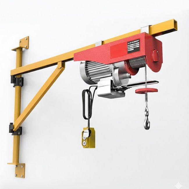 - Cơ chế lắp đặt: Khung cẩu được cố định trực tiếp vào tường bê tông hoặc cột trụ thép bằng hệ thống bu lông nở chịu lực cao, giúp giải phóng hoàn toàn diện tích mặt sàn.
