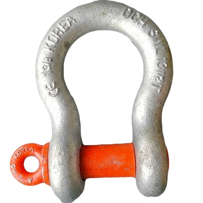 - Chốt định vị (Pin): Là thanh chốt ngang qua hai đầu chữ U, thường được sơn màu đỏ nổi bật để cảnh báo an toàn. Loại chốt vặn ren (như trong hình) giúp việc tháo lắp ma ní móng ngựa diễn ra nhanh chóng và thuận tiện.