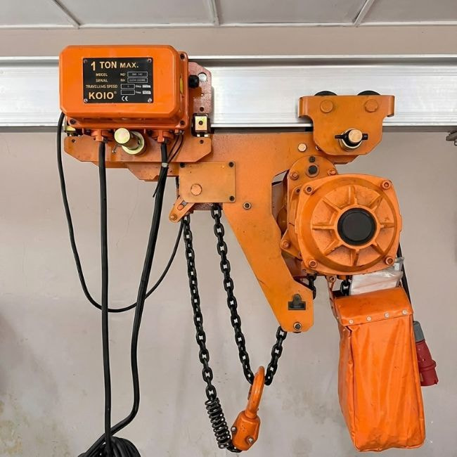 - Nguyên lý hoạt động: Khác với các loại palang cố định, Palang xích điện di chuyển KOIO ưu việt hoạt động dựa trên cơ chế truyền động xích kết hợp với con chạy điện. Động cơ cung cấp năng lượng để nâng hạ hàng hóa, trong khi con chạy giúp di chuyển vật nặng dọc theo khung dầm một cách chính xác và nhanh chóng.
