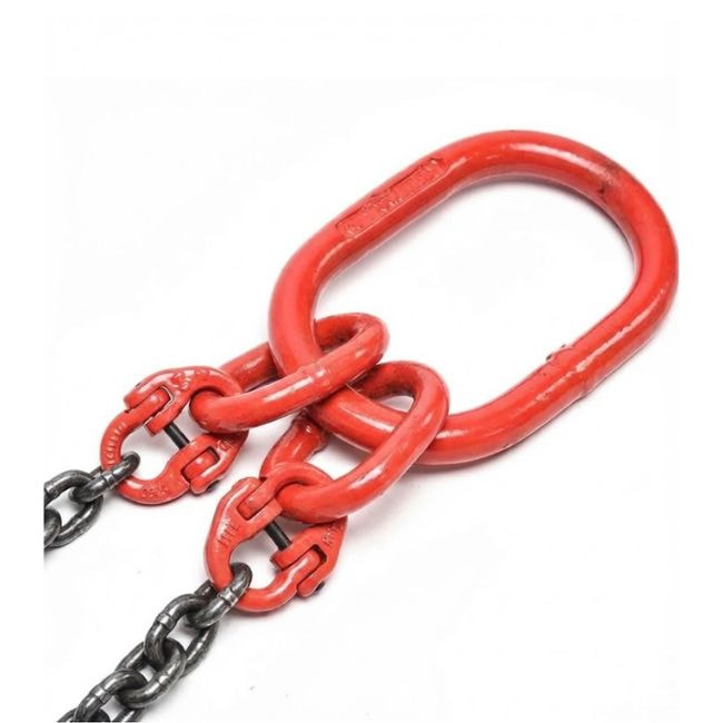 Tại sao phải dùng vòng khuyên đôi? Khi sử dụng bộ sling 3 chân hoặc 4 chân, nếu dồn tất cả vào một vòng khuyên đơn, các mắt xích sẽ bị chồng chéo (bó kẹt), dẫn đến lực phân bố không đều, dễ gây đứt gãy hoặc tuột tải. Vòng khuyên đôi giúp chia tách các chân xích ra hai bên, đảm bảo góc nâng chuẩn và lực được dàn đều.