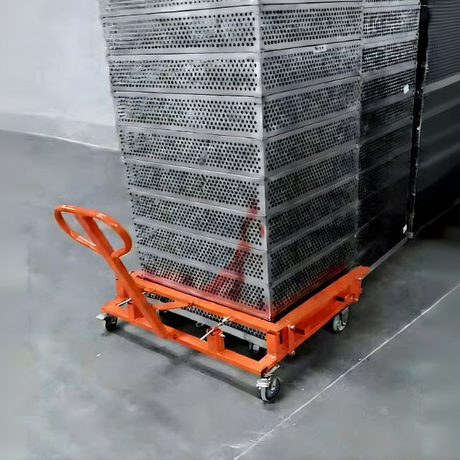 - Khung nâng hạ: Cơ chế đòn bẩy chắc chắn giúp nâng thùng hàng lên khỏi mặt đất chỉ với thao tác nhẹ nhàng.
