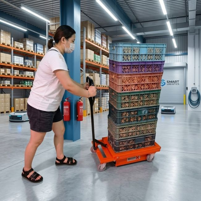- Giá thành hợp lý: Là giải pháp đầu tư tiết kiệm so với các dòng xe nâng điện phức tạp, nhưng vẫn mang lại hiệu quả công việc tương đương cho nhu cầu di chuyển thùng nhựa.