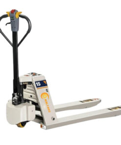 Xe nâng tay thấp điện 1,5 tấn, hay xe nâng điện pallet, là thiết bị vận chuyển hàng hóa trong thiết bị kho bãi, nổi bật với thiết kế nhỏ gọn, linh hoạt. Sử dụng pin lithium-ion và motor DC không chổi than, xe vận hành êm ái, không phát thải, phù hợp cho kho hàng, siêu thị, và nhà xưởng ngành thực phẩm, dược phẩm.